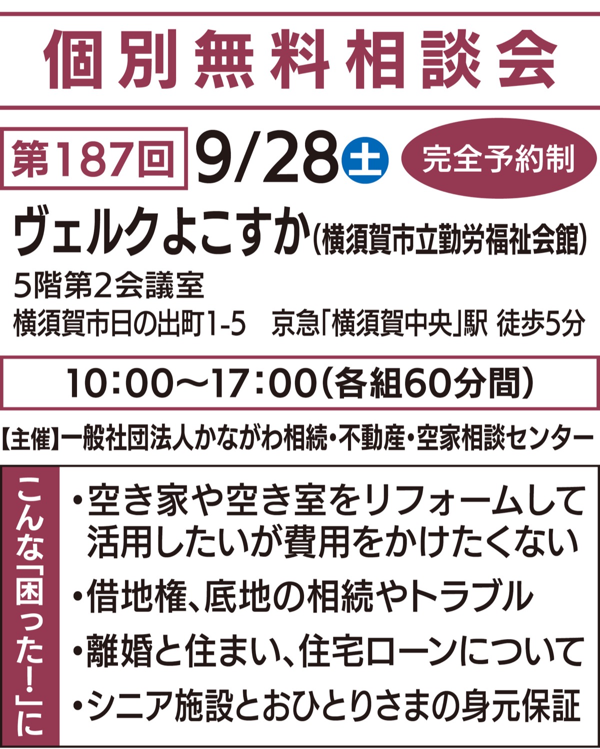 相談会は完全予約制。事前申し込みは【フリーダイヤル】0120・08・6656