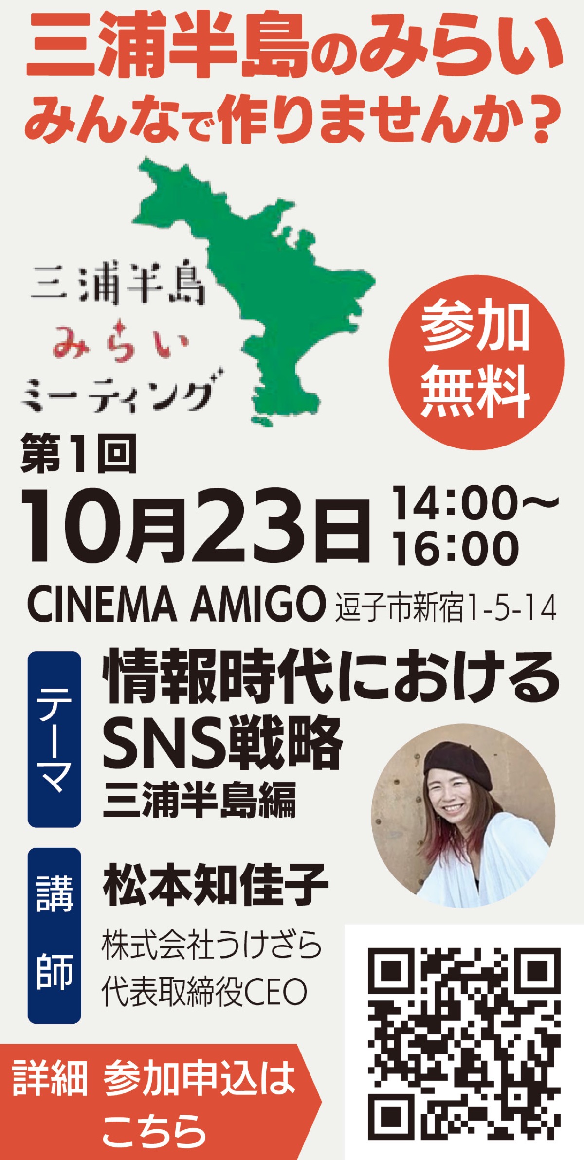 対象は半島在住・在勤の事業者など。詳細・参加申し込みは左図参照。第1回は10月23日(水)、逗子市のCINEMA AMIGO内イベントスペースで開催する。