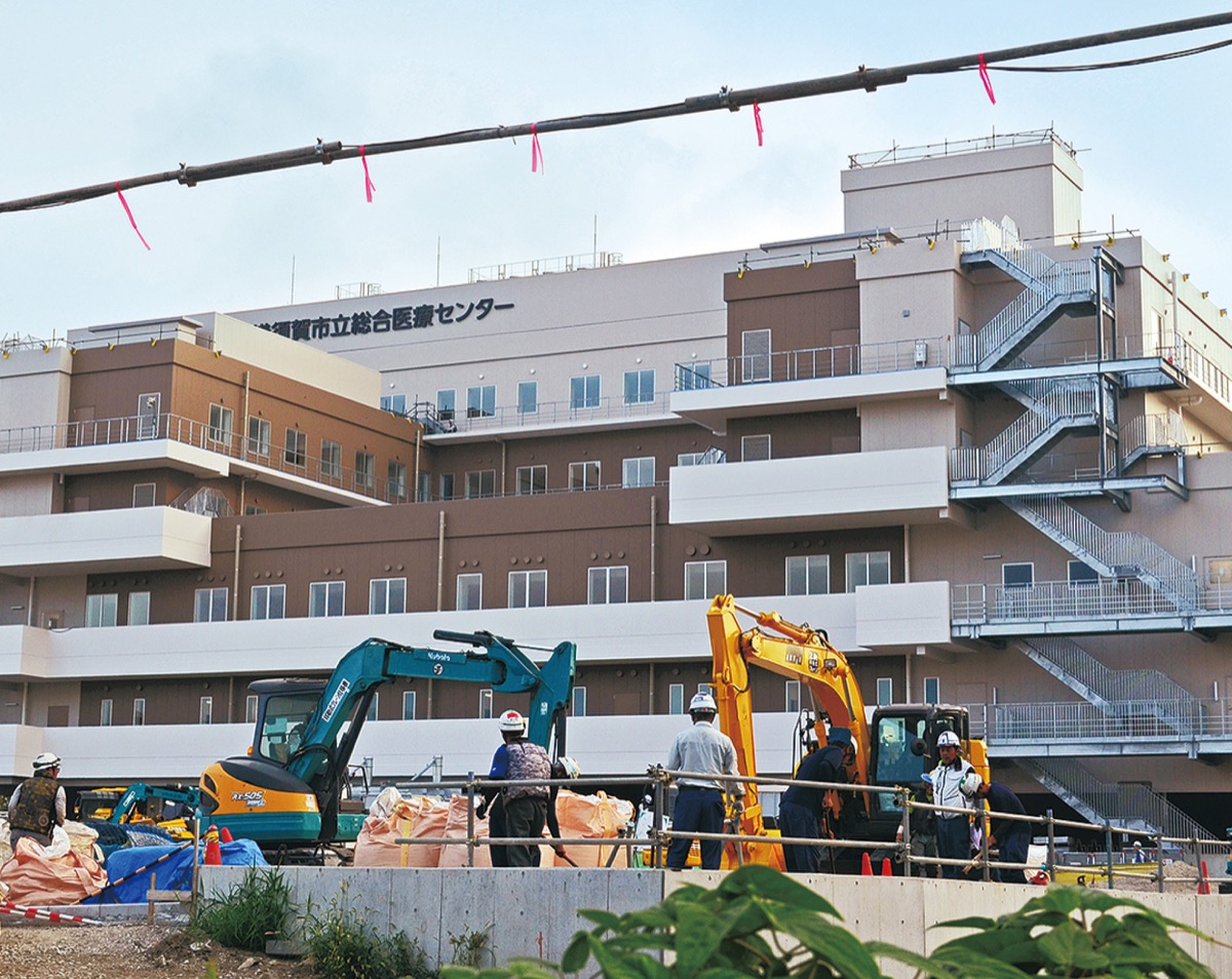 横須賀市立うわまち病院の移転先となる神明公園(神明町1の8)内では、新院となる「市立総合医療センター」の建設が着々と進んでいる。
