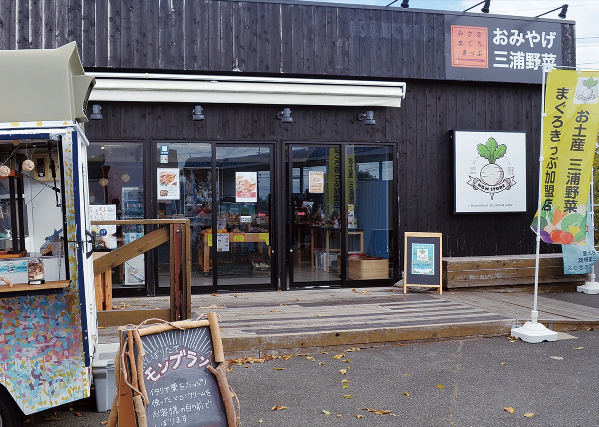 農家から直接仕入れた三浦野菜や水産加工品、地元アーティストが作成したアクセサリーなどが並ぶほか、週替わりでキッチンカーの出店もある。