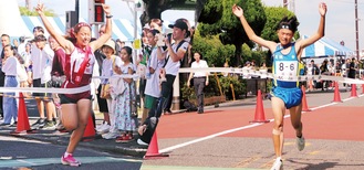 後続を40秒突き放しゴールテープを切った追浜中の流れを作ったのは2区・石川誠修さん(2年)。トップとの約20秒差をひっくり返し、さらに2位以降を引き離した。メンバーで朝7時台から行う朝練や土日にも2〜3時間の練習を重ね、「成果が出て良かった」と振り返る。キャプテンの1区・山下月渚さん(3年)は、「この勢いのまま、県を突破し関東へ」と意気込む。