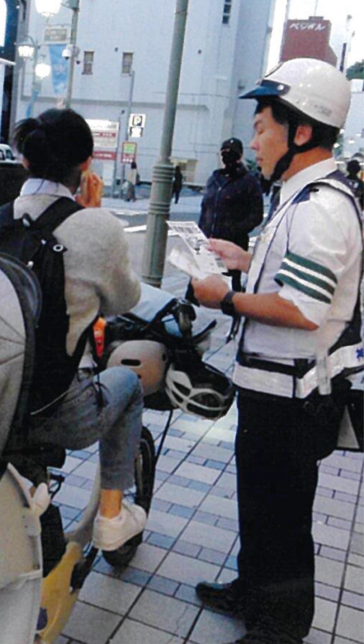 改正に際し横須賀警察署では10月30日に市と合同で啓発の声掛け運動を実施。外国人に向けた英語対応のチラシも作成し改正の周知を図った。「目的は検挙ではなく事故の減少。学校や企業に向けた安全講習を積極的に取り組んでいきたい」と交通課長は話す。