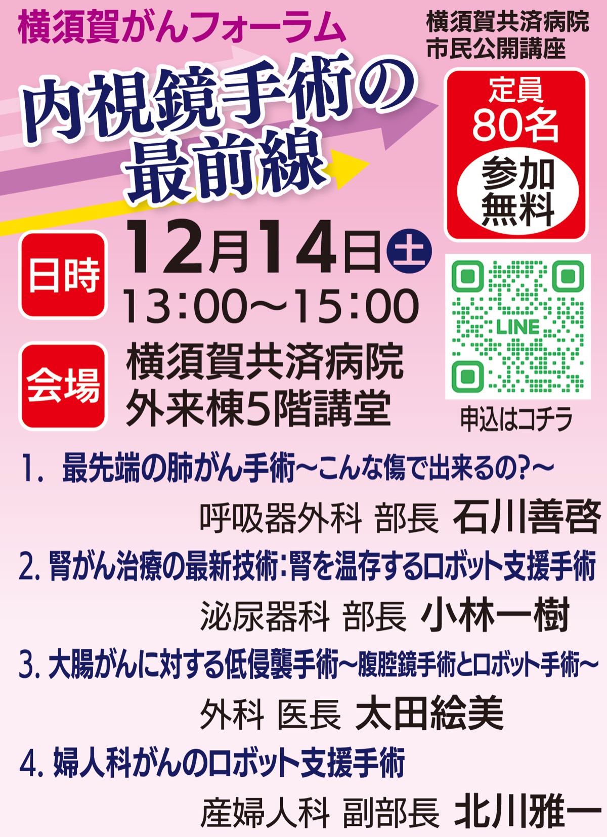 時間は午後1時から3時。会場は同院外来棟5階講堂。申込は、同院事務局【電話】046・827・1117もしくは公式LINEから。