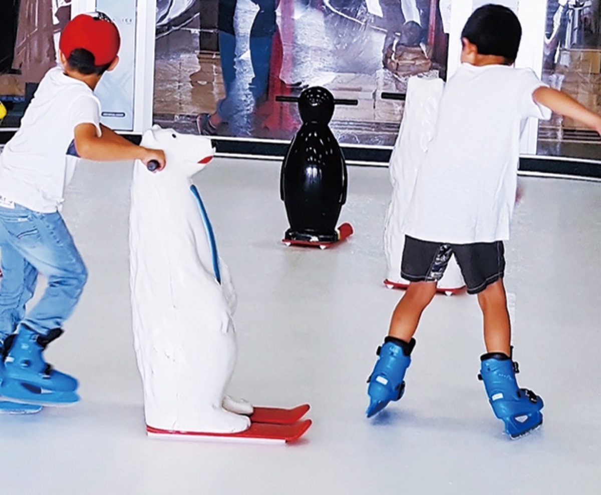 氷ではなくアクリル板を使った特設リンクで、転んでも濡れないのが特徴。開設時間は午前11時から午後6時30分(最終日は4時まで・最終受付は終了30分前)。1回20分の利用で、料金は高校生以上500円、4歳以上300円。