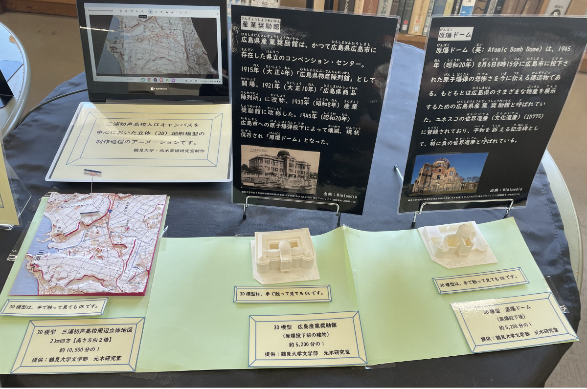 この日の講義では、弱視や全盲など、人によって見え方に違いがあることを紹介し、「その人の見え方に合わせた情報提供が大切」とした。建物などの大きなものの形を把握することが難しい視覚障害者のために元木教授が作成した「3D模型」も展示。同校周辺の立体地図や広島県の「原爆ドーム」などに触れながら生徒らは「形を確かめることで触覚が成長する。そうすることで少しでも今より見えない方に寄り添うことが出来るのでは」と感想を話した。