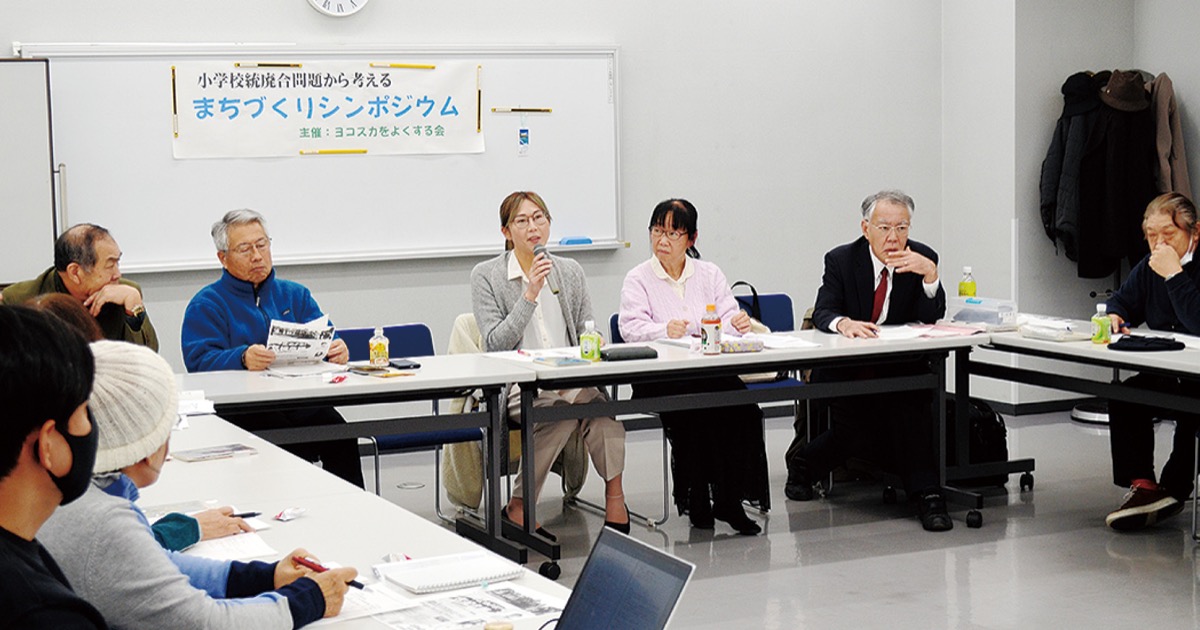 横須賀市立小学校計4校が4月に統合することを巡り、市民団体の「ヨコスカをよくする会」は25日、同市日の出町のヴェルクよこすかでシンポジウムを開催した。対象校に通う児童の保護者や地域住民ら約40人が参加。小学校統廃合に関する課題意識を共有した。