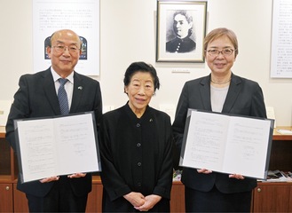 緑ヶ丘女子高等学校は22日、フェリス女学院大学(横浜市泉区)と高大連携に関する協定を結んだ=写真。同大学の講師による出張授業や学生・生徒同士の交流が促進され、相互の教育の質向上が期待されるという。