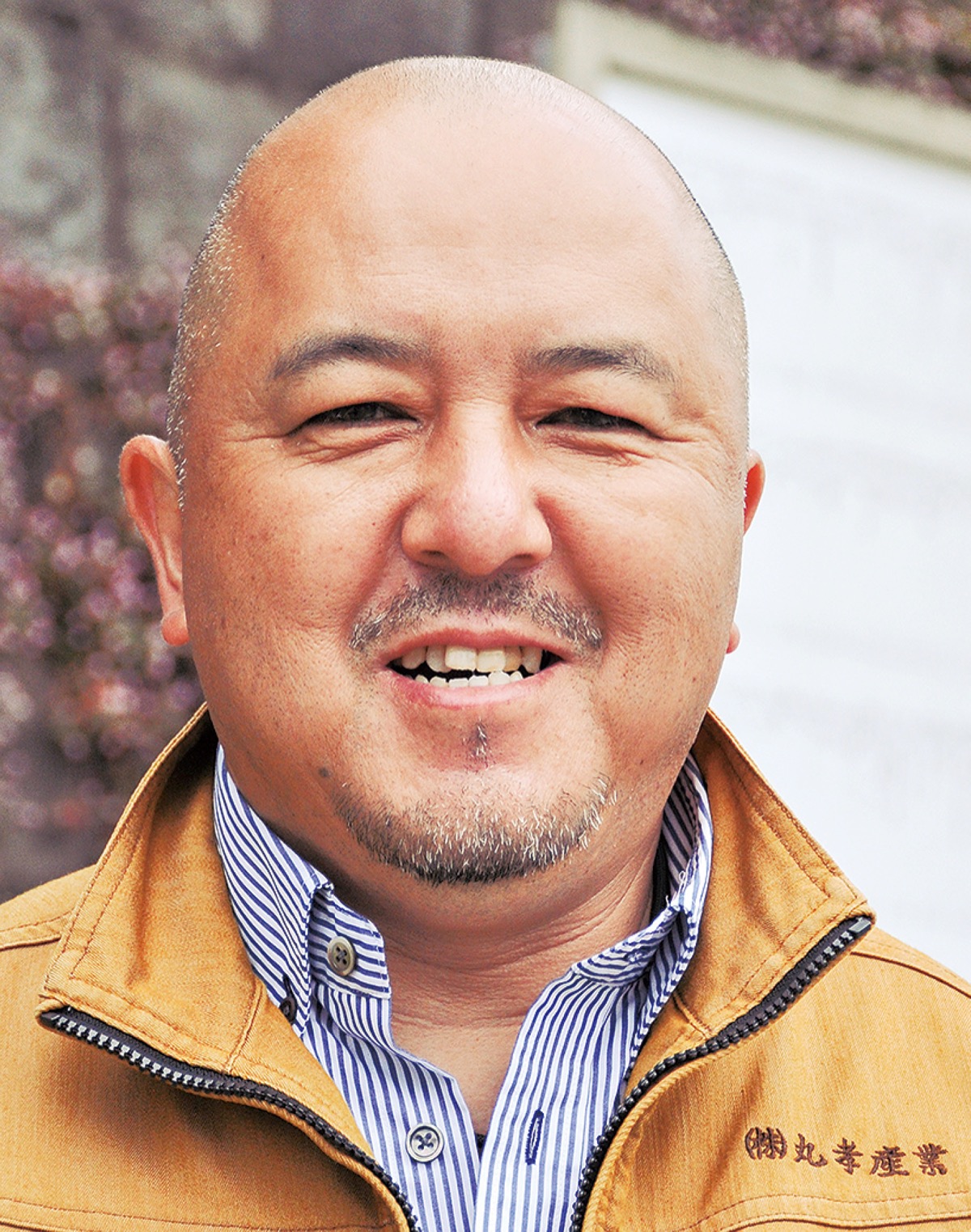 ○…土木工事を請け負う丸孝産業の代表。経営者としての忙しさがあっても「頼まれたことは断らない」という姿勢を貫く。11年前に境内に建てた下社(女性の神)の御柱の横に今回、上社(男性の神)の御柱を並べて「夫婦柱」にして祀る。大津の里に新たな歴史を刻む。