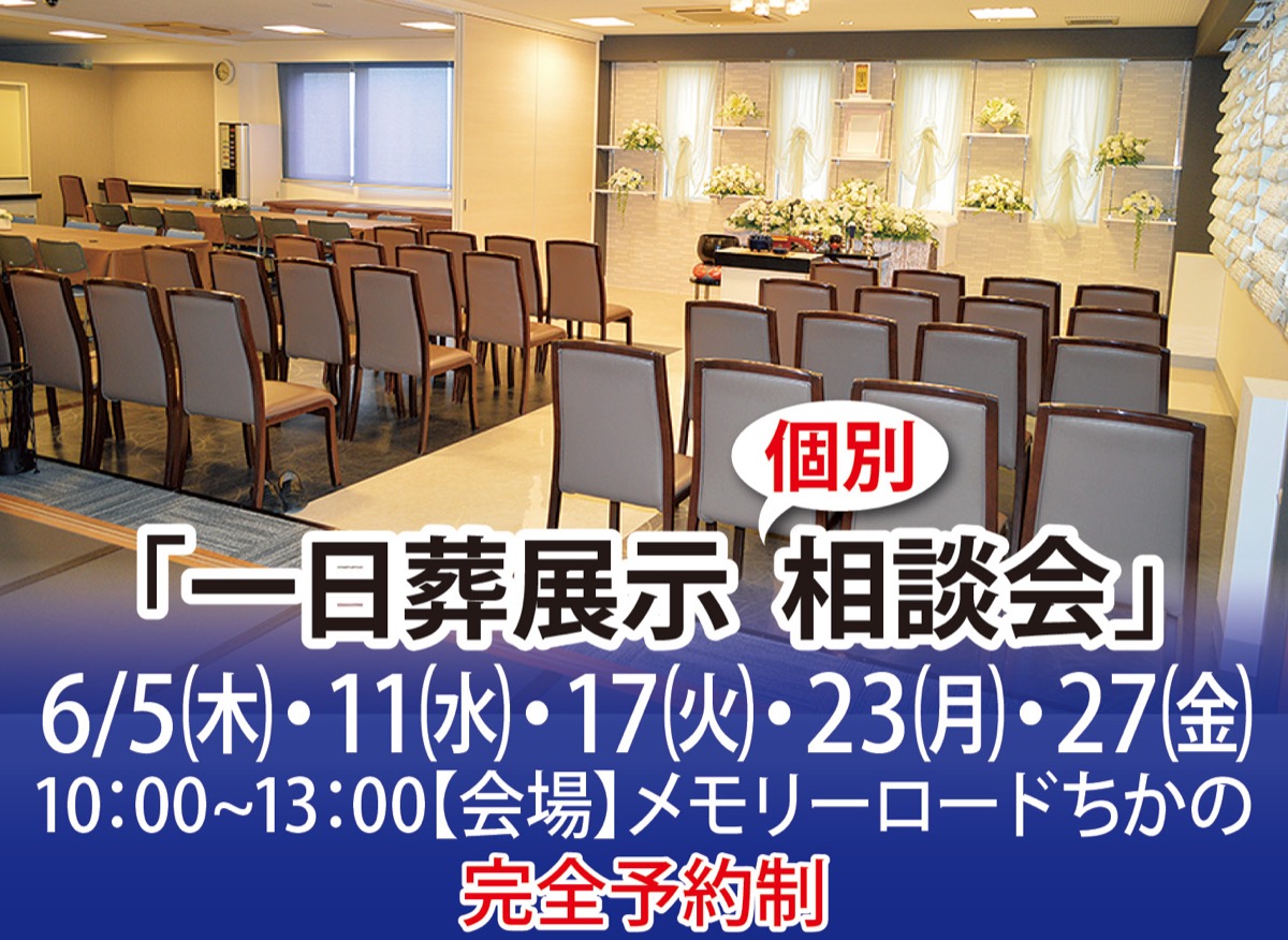 横須賀市公郷町の近野葬儀社では、親族など近しい人のみで執り行う「家族葬」「一日葬」に関する無料展示相談会を開く。それぞれの違い、必要な準備と手続き、費用についての情報提供を行うことで、人生の整理や家族の負担軽減につなげてもらう。会場は斎場メモリーロードちかの。