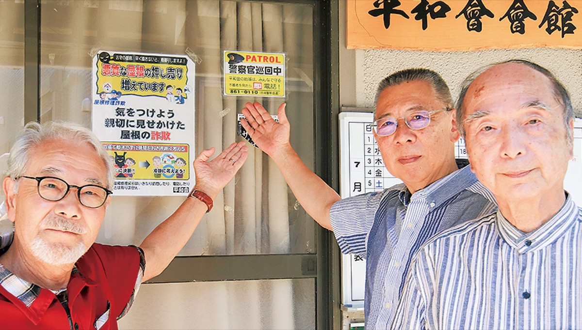 「平和会の地域は、みんなで守る」「不審者を見たら即電話!」--。追浜2丁目平和会(並木真弘会長)は、「警察官巡回中」と記したオリジナルの防犯ステッカーを作成し、地域の治安を守る活動に取り組んでいる。町内に住む希望者に配布し、玄関や町内の掲示板などに貼付してもらうもので、地域一体で防犯意識を高めていく狙いだ。並木会長によると、現在会に加入する戸建て住宅約180世帯のうち、100世帯ほどに行き届いているという。