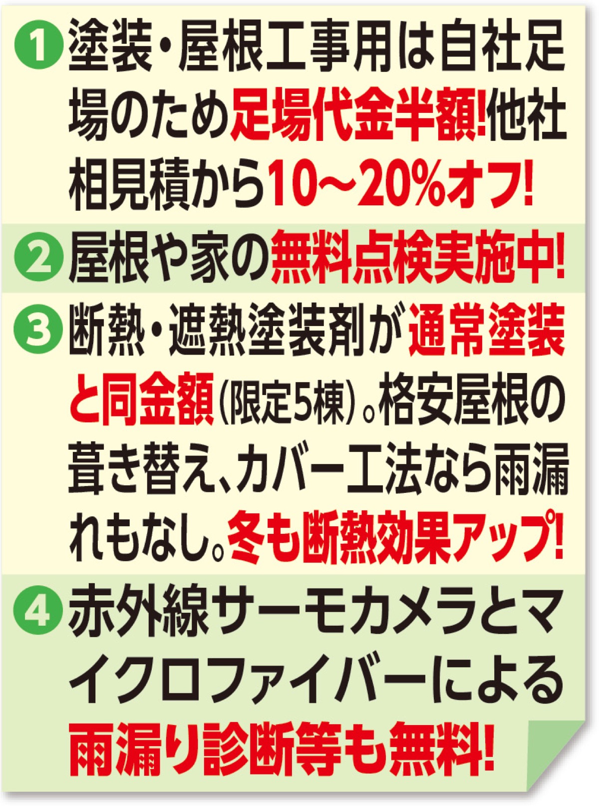 突然訪問は闇バイト関連も。当社は『屋根に登らずに点検』するので安心。また、本紙に14年間掲載していますが、トラブルもありません。創業から訪問販売や電話勧誘は一切行っていません。