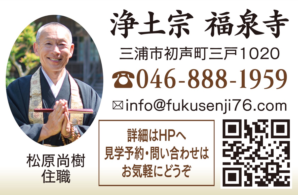 富士山を背景に沈みゆく夕陽や、眼下に広がる相模湾の絶景を一望できる墓所として福泉寺(初声町三戸)の樹木葬「傳(でん)」が人気を博している。