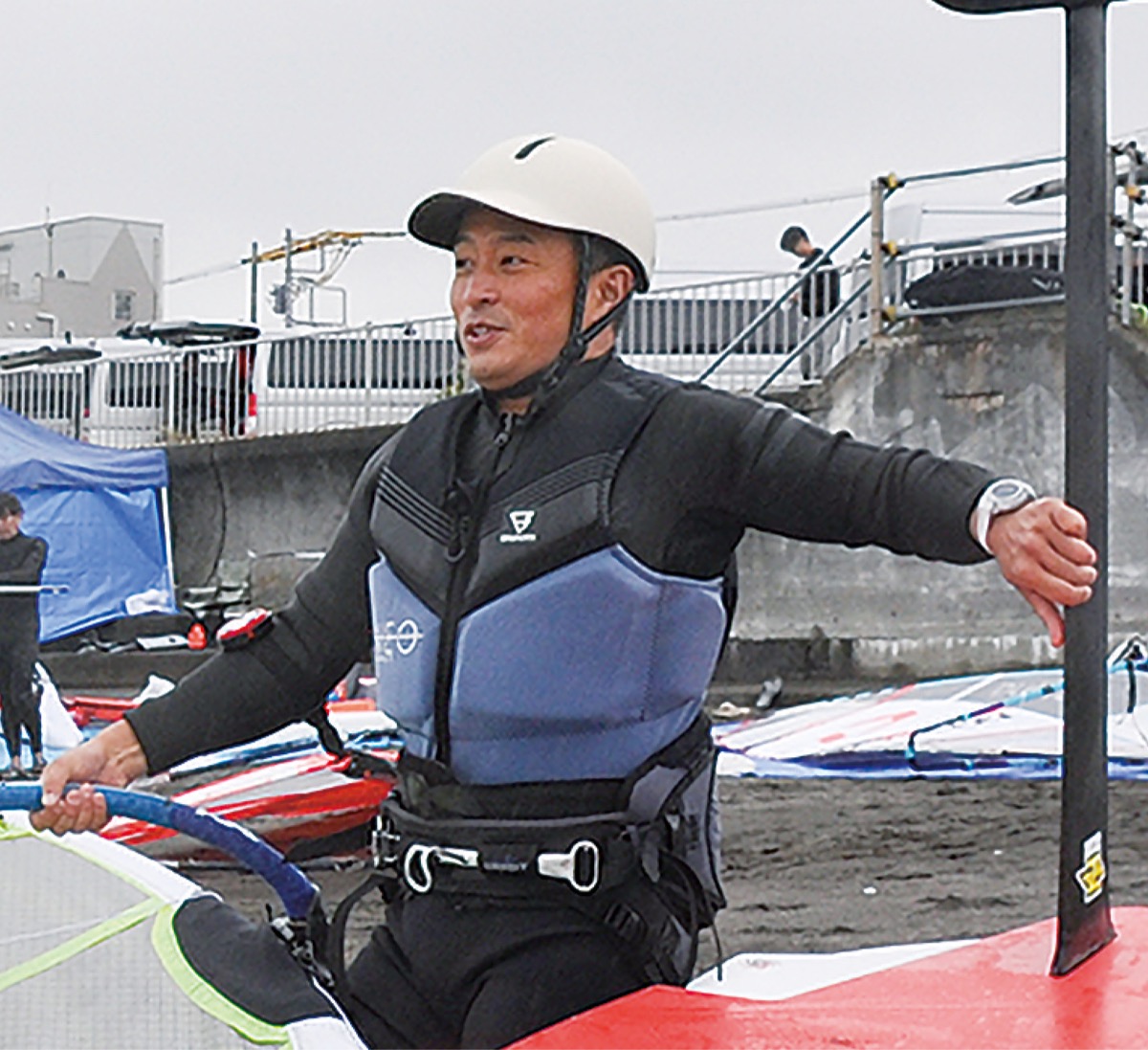 同大会では、数年前からGPS機器を用いた観戦システムが導入されている。レース海面は沖合に設置されることが多く、ビーチから選手の一挙一動を把握することは難しい。選手の位置をリアルタイムで取得して会場のモニター画面やスマートフォンで実況をわかりやすく伝える仕組みが大きな役割を果たしている。開発者は横井愼也さん(42)。横須賀市内に本社を置くベンチャー企業「N-Sports tracking Lab 合同会社」の代表でウインド(W)サーフィンのトップアマチュアだ。今回、出場権を獲得してW杯に初参戦する。