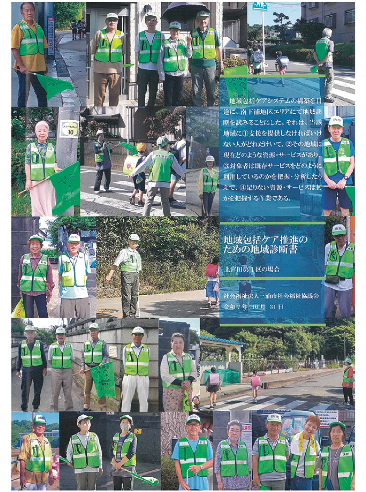三浦市社会福祉協議会(社協)は、地域包括ケアシステム構築のため2016年から地域調査を実施している。地区の強みや課題を「診断書」としてまとめるもので、このほど6冊目となる上宮田第1区の診断書=左下写真=が完成した。