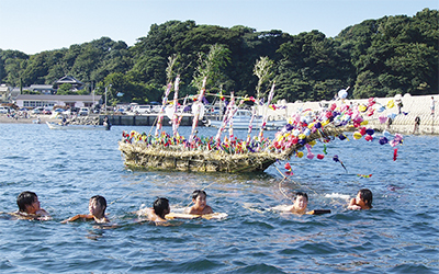 「三戸のオショロ流し」は、市内初声町三戸に伝わる盆の精霊送り行事で、現在は三戸お精霊流し保存会が中心となり受け継がれている。