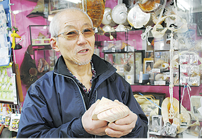 藤沢市江の島島内にある「世界の貝の博物館『貝広物産店』」が今年、創業100年の節目を迎える。約2000種類の貝を常時展示し、遠方から足を運ぶコレクターも後を絶たない同店。現在は、3代目の片野義雄さん(68)が店を切り盛りしている。