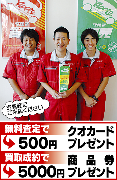 また、フィットシャトルHVなど豪華賞品が当たる「ありがとうキャンペーン」も同時実施中。愛車を売るならオトクいっぱいの今がチャンス!「高価買取の努力します」と高取店長。まずは無料査定でクオカードをゲットしよう!