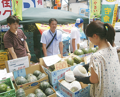 売られたのはスイカやこだわりかぼちゃ、朝採りのとうもろこし、トマト、メロンほか、旬の野菜や果物。ブースでは、農協職員が勧める試食に、「美味しい」と笑顔を見せる観光客が見られた。メロンを購入した埼玉県から来た女性は「三浦の農産物は食べたことはないが、メロンを見て美味しそうだったので購入した。三浦のメロンは初めて味わうので楽しみ」と話していた。大井組合長は「県内で作った農産物を県内で消費するといった観点でも地産地消に繋がると思う。三浦野菜の新鮮さ、美味しさなどを知らない人は多い。三浦野菜の認知度を上げ、需要拡大に繋げたい」と話した。中華街パーキングを運営する横浜中華街パーキング協同組合の担当者は「中華街の玄関口として、訪れる人に対してもてなしの心を大事にしていきたい。今回の三浦市農協のイベントは中華街にとっても歓迎」と話している。中華街パーキングでの野菜販売は21日、28日にも行われる。