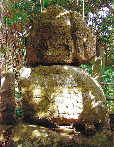 前回の終わりに述べた、「五輪塔とおぼしき石積み」は、三浦義村の墓でした。関東大震災の時、崖下に落下して破損してしまったものということです。『新編相模風土記稿』には「碑高七尺(約2・3m)許」とあります。しかし、すぐ近く、八坂神社の入口近くに、村人など多くの方の芳志によって「三浦義村公之墓」と刻まれた供養墓があります。いつ建てられたものか分かりませんが、大正10年とも、11年との説があります。供養墓の横に「三浦義村公墓碑改修協賛会」と刻された石板塔があり、福寿寺住職杉山滴水氏以下、発起人5名の他、郷土史家浜田勘太氏と協賛委員4名、施工者5名、特別協賛者1名。さらに、92名の墓碑改修協賛者芳名と寄金をよせた人、14名の方々の氏名が刻されています。この他には、義村の法名「南向院義天良村禅定門」に因(ちな)んだ「南向院」という建坪61平方メートルの草葺きのお堂があったと言われています。福寿寺の塔中(たっちゅう)であったようです。義村の供養墓の裏手には五輪塔の崩れたものや、享保17年(1732)の「六十六部供養塔」や宝暦5年(1755)の年号が入った「無縫塔」などが見受けられます。墓の前を少し進むと鳥居があり、その奥に社殿があります。「八坂神社」です。低い段を上がると両側に狛犬があり、右が「ア」で、左が「ウン」像です。裏に安政3(1856)丙辰夏五月吉日」と彫られています。山側にある手洗い鉢は「文政7年(1824)甲申6月5日建立」となっています。この日が八坂神社の祭礼の日だと言うのです。寄進者は「名主深瀬八三郎」との銘があります。神社の祭神は「素戔鳴尊」(すさのおのみこと)で、寛文12年(1672)6月創祀と伝えています。元は岩浦の山王社にあったものを、大正6年(1917)の大暴風のため壊れたので、この地に移したと言うことです。浜田勘太氏の著『南下浦の探訪記』によりますと、明治20年編の「金田村日誌」の記事の中に、「八坂神社ハ平六兵衛ノ守本尊ニテ岩浦ニ安置シタルハ即チ是ナリ」とあったということが書かれています。