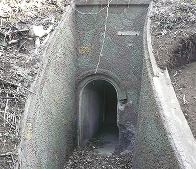 下は、コンクリートで造られた地下壕で3つの火薬庫と長さ50mの通路がある。入口には迷彩色が残っている。「内部の保存状態は非常に良く、価値の高い戦争遺跡。通常は地下壕に入ることはできないが、当日は特別に探索することができる。ぜひ参加を」と呼び掛けている。