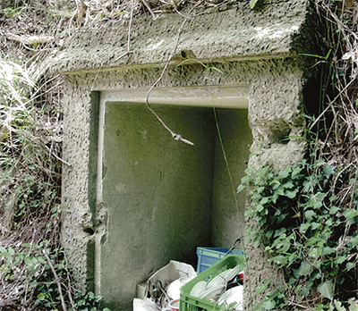 岩堂山には、かつて三崎砲台の観測所が設けられていました。ここで、敵艦船の方向、距離、速度などを測り、砲台に連絡するところでした。