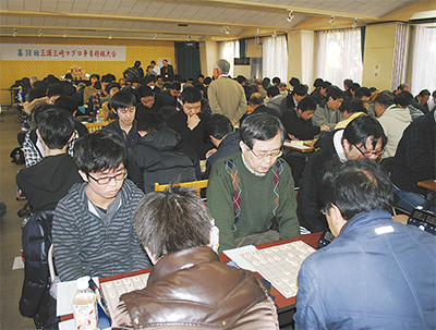大会には市内近郊のほか、茨木や静岡、愛知、福岡と広範囲の地域から集まった。横浜から来たという男性は「三浦でこのような大会があることを知って初めて参加した。こんなに多くの参加者がいるので優勝は厳しいかもしれないが、頑張りたい」と話していた。 競技は一般(A〜C)、女性、子どもと5部門で実施。ピリッとした緊張感に包まれた各会場では、盤面に打たれる駒の音だけが響いた。大会窓口の三浦商工会議所は「遠い所から毎年参加する常連もいる。この大会をきっかけに、参加者に三浦の良さを感じてもらえれば」と話している。