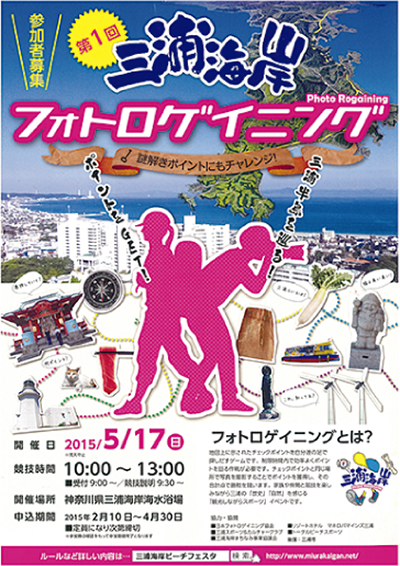 三浦の魅力を歩いて、撮って体感―。来月17日(日)には、「第1回三浦海岸フォトロゲイニング」が催される。「フォトロゲイニング」とは、制限時間内に地図に記されたチェックポイントと同じ場所で写真を撮影してまわる、ゲーム形式の新感覚イベント。
