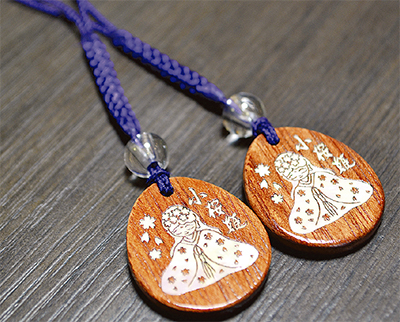 パワースポットめぐりの参拝客や小桜姫ファンの増加を受け、恵子さんが新たな土産品として携帯ストラップを考案。木製の根付には螺鈿(らでん)で描かれた小桜姫と水晶玉が付けられ、「お参りに来たからにはパワーを持って帰ってほしい」と話している。