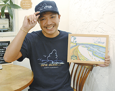 まず取り掛かったのは、地元への周知。海の写真をインスタグラムにアップしたり、ブランドのロゴデザインが入った掲示用ステッカーや三浦海岸を描いたイラストを持って商店を飛び込みで訪問し、活動趣旨と郷土愛を説いて回った。地元飲食店の「南風COFFEE」「酒肴旬菜 とも」、三浦海岸を拠点に活動するインディーズバンド「LYLA(ライラ) BOOPS(ブープス)」など、熱意に動かされて活動当初から快く応援してくれる仲間も多く、「同じ思いを抱いている人・グループはたくさんいる。活動を通じて思いを1つに繋がるきっかけを作れたら」と石井さんは話す。