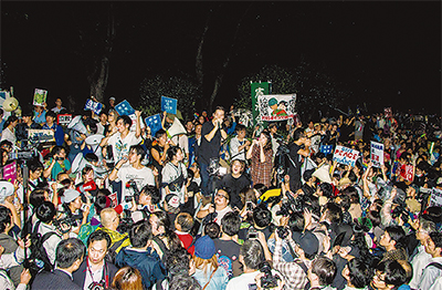 安全保障関連法案に危機感を抱いた若者たちが、結成した学生団体「SEALDs(シールズ)」。昨年夏、国会前をデモ隊が埋め尽くして抗議活動を行い=写真=、大きな話題を呼んだ。半年間の社会運動に密着したドキュメンタリー作品で、「たくさんの方に見ていただき、平和や憲法、民主主義とは何かをもう一度考えてもらえたら」と主催者は話している。