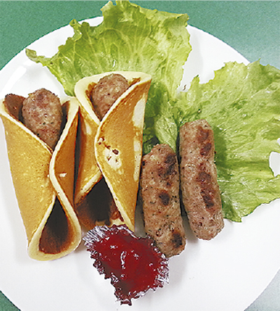 調理師の中島睦子さんを講師に迎え、手づくりソーセージとパンケーキ=写真=の調理法を楽しみながら学ぶ。