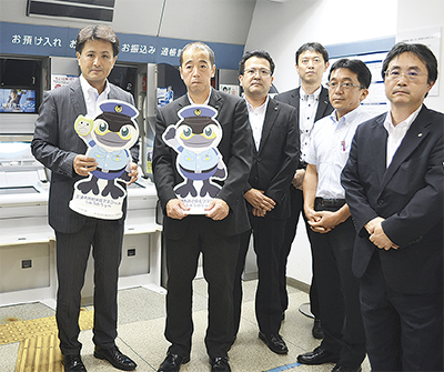 今回設置されたのは、「せっと君」と呼ばれる音声注意喚起機器。市内4金融機関、8つの有人支店のATM(現金自動預払機)コーナーに設置されている。人が近づくとセンサーで感知し、「警察からのお知らせです。お金を引き下ろす前に少し聞いてください」「お金を使い込んだと言われていませんか」などのガイダンスを自動で流す。神奈川県内では今年5月に川崎市の高津警察署管内で導入されているが、市内全域の金融機関が一斉に購入し、取り入れるのは今回が初めてだという。