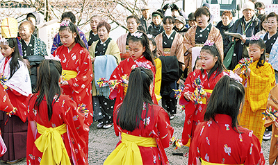 毎年、1月15日の小正月に豊漁・豊作、商売繁盛、家内安全を祈願し、女性のみで行われる伝統行事。大人の女性の唄にあわせ、少女が舞扇と「チャッキラコ」と呼ばれる鈴や飾りの付いた綾竹を持って6通りの舞を奉納。地区内の家々や商店などをまわる。1976年に国指定重要無形民俗文化財、2009年にはユネスコ無形文化遺産に指定・登録されている。
