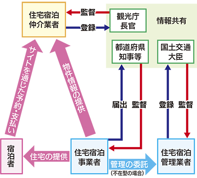 事業希望者は、都道府県知事等に台所や浴室など設備の詳細を記した間取りや住宅登記事項証明書、誓約書などの書類とあわせた届け出が必須。受理されれば、住宅専用地域で年間180日を上限に営業することができる。