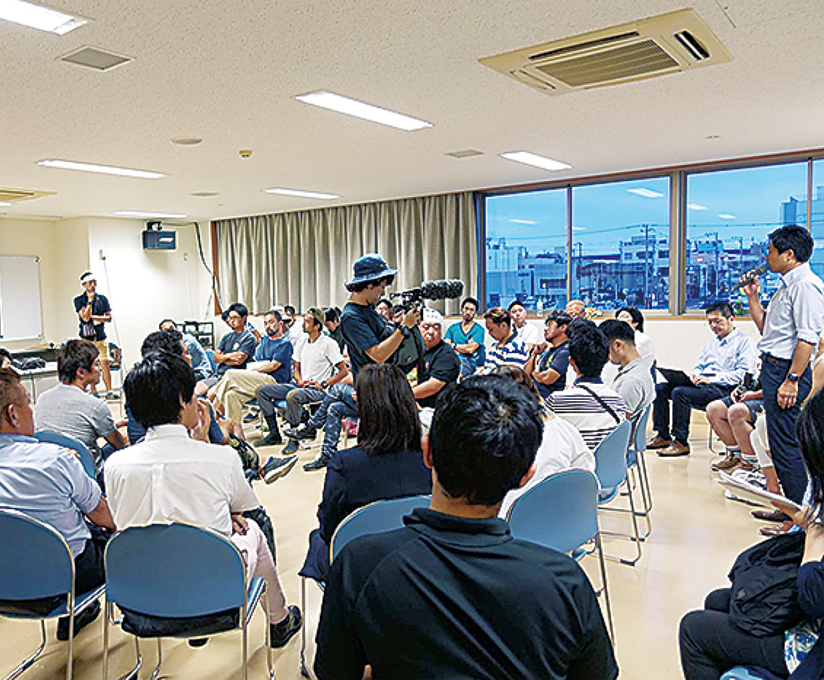 「三崎朝市出店者の高齢化による個店減少と来場者の減少。歯止めをかける知恵を貸してほしい」と朝市関係者が投げかけると、コンセプトを見直す声や出店料・時間設定、三崎下町との密な観光連携、他朝市の事例紹介など、活発な意見交換が行われた=写真。