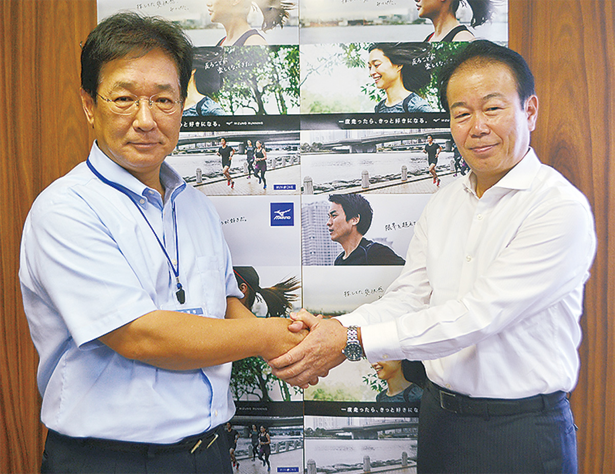 先月30日には、同社営業本部首都圏支社の石田雅司支社長らが吉田英男三浦市長を訪問=写真。全国で数々のマラソン大会に携わる同社のサポートに吉田市長は感謝の言葉を述べ、石田支社長は「これをきっかけに、市といろいろな関係をつくっていきたい」と話した。