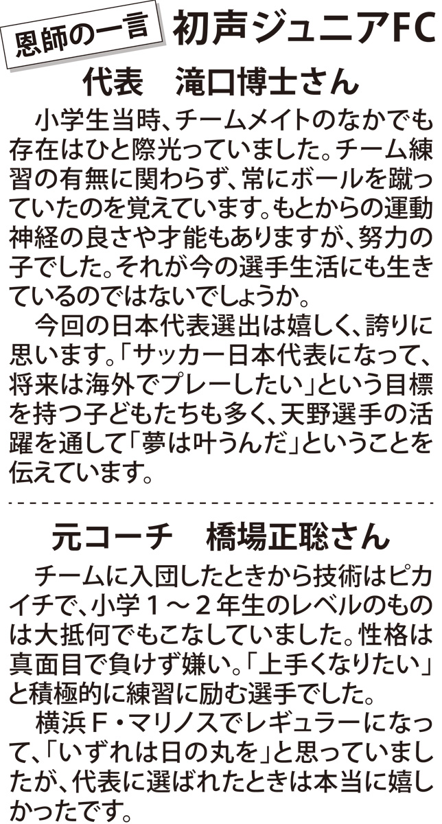 本紙ではJリーグ「横浜F・マリノス」(以下、「マリノス」)に所属する三浦市出身の天野純選手にインタビューを実施。サッカーとの出会いや練習姿勢、初めての日本代表招集、地元への思いなどを聞いた。