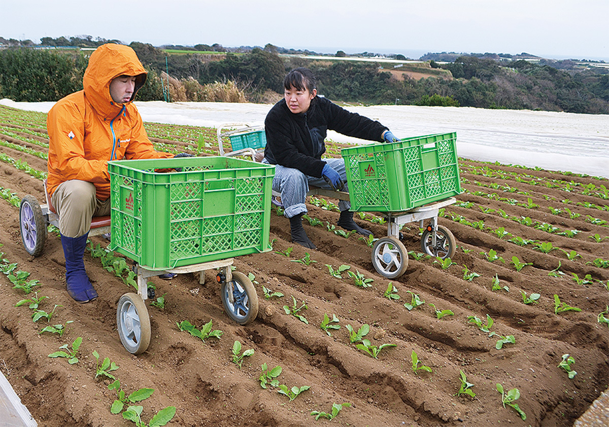 この日参加したのは、新たなライフスタイルの模索で農業に興味を持ったという逗子市在住の40代男性。朝9時から夕方4時まで大根畑で作業を手伝い、農家宅で振る舞われた昼食で採れたてのおろぬき菜のおひたしを味わった。「農家も助かるし、参加者も喜ぶいい企画」。趣旨に賛同した長谷川農園の長谷川清志さんは振り返る。ミサキステイル代表の菊地未来さんも「今後も継続し、農家からの依頼に応えられたら」と展望を話した。