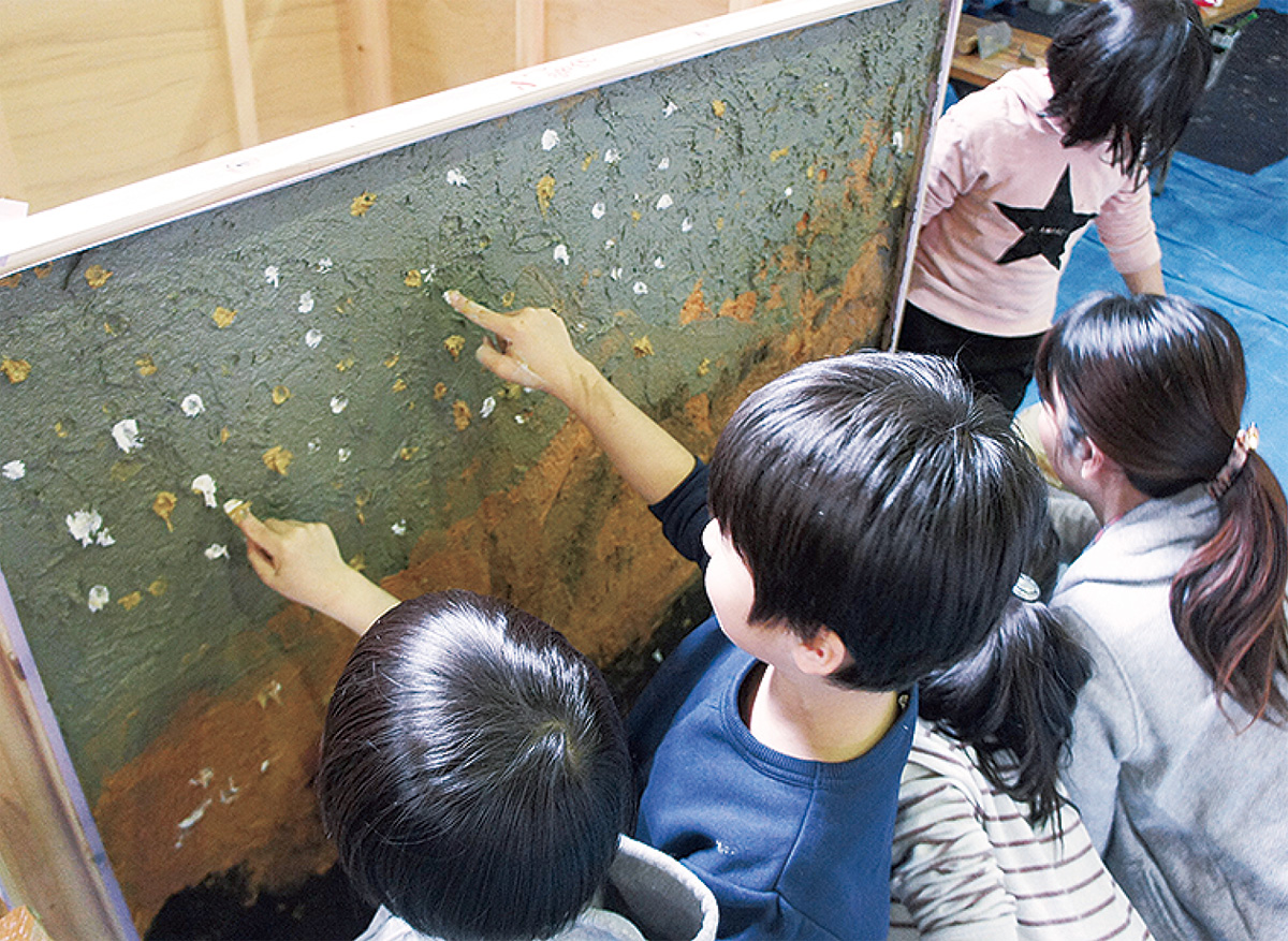 同展は両日、三浦市社会福祉協議会安心館を中心に開かれる「みんなの文化祭@引橋」(小曽戸聡実行委員長=人物風土記で紹介=)の企画のひとつ。ほかにも、同署内では、剣崎小学校・三崎小学校児童らが参加したアート作品「みうらのへそ」や、先月開かれた事前ワークショップで市民が制作した土壁アートウォール=写真=などが展示される。