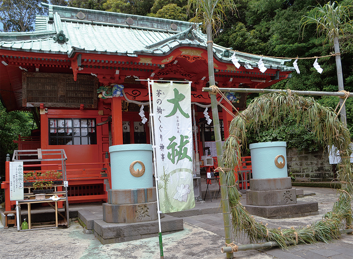 茅の輪=写真=を8の字にくぐって穢れをはらい、無病息災を祈る恒例の夏越大祓(なごしのおおはらえ)は、6月30日午後4時から執り行われ、期間中は夏詣限定の御朱印が頒布される。