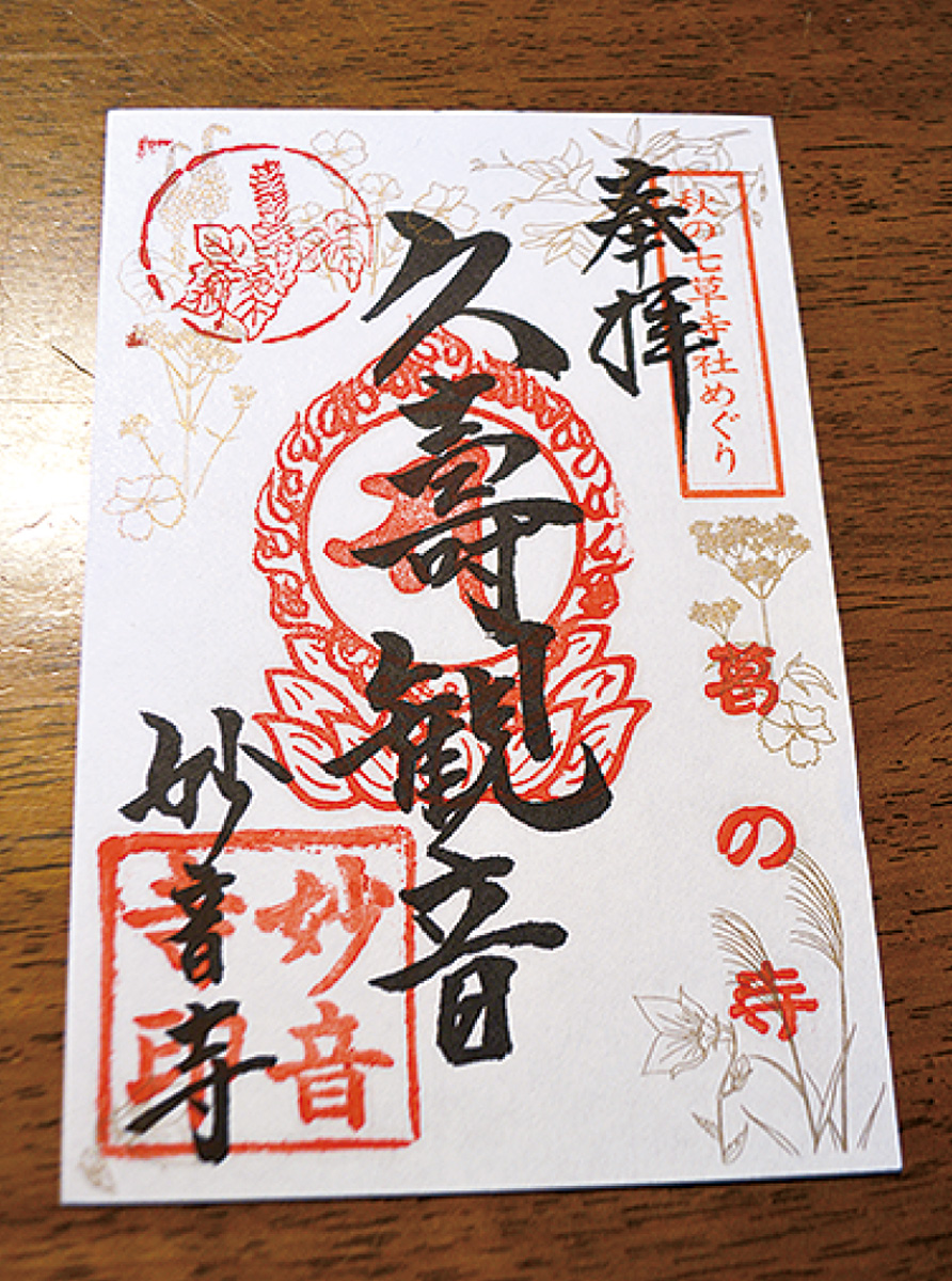 今年は天候不順や台風15号による暴風雨被害で、花の開花はまばらながら、参拝は可能。各札所で秋の七草の紋の入った御朱印を受けられる。