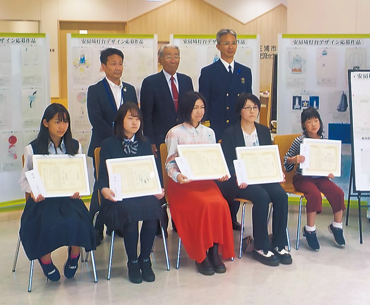 老朽化による建替えに伴い、市民公募していた城ヶ島の安房埼灯台の新デザイン。今年6月に発表された入賞作品の表彰式が、先月27日に市民交流センターで行われた。