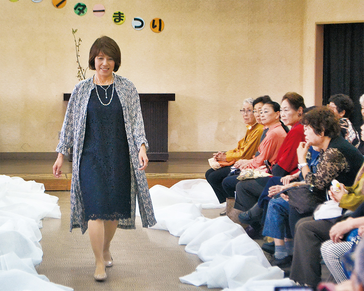 和服リフォームサークル「むつみ会」は先月26日に開かれた初声市民センターまつりで、恒例のファッションショーを行った。