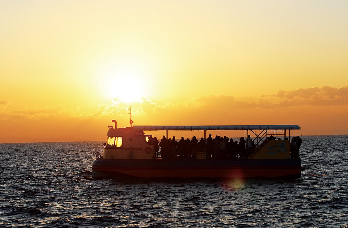 12月31日(火)の「大晦日サンセットクルーズ」は、午後4時20分に三崎港を出港し、船上から沈む夕日を観賞。帰港後、参加者全員に温かい海藻麺やまぐろ汁が振る舞われる。料金は大人1千円、小学生500円。