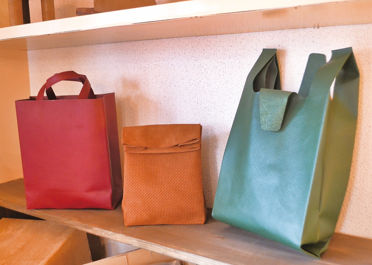 1枚数円で手に入り、使い捨てされるレジ袋をモチーフに、上質な本革で作るエコバッグ――。対極にある両者を掛け合わせることに面白さを見い出し、牛革を加工した自然に返るプランターや、ファストフード店のテイクアウト用紙袋を模したクラッチバッグなども製作してきた友永さん。「常に新しいことをやって、『これを作ったの?』と驚かせたい」。10代の頃から変わらないのはデザインだけでなく、「自分のなかの軸もそのまま」と話し、「次は希少な布でマスクを作ってみたい」と意欲を見せた。