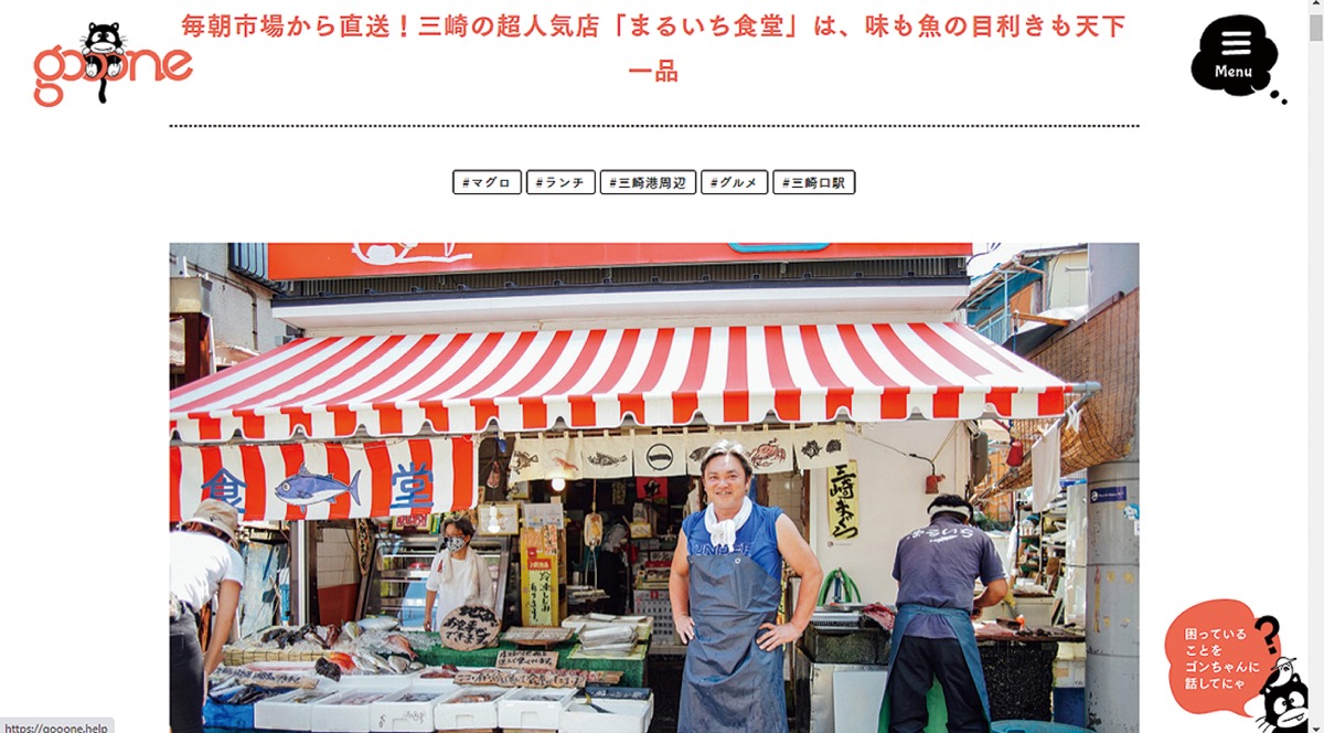 三浦・三崎に特化した観光情報サイト「gooone(ゴーン)」が、先月末にオープンした。三崎の出版社「合同会社アタシ社」が制作。地元記者を中心に、地元民ならではの視点で飲食店や街を紹介する記事やコラムを配信しているほか、観光案内サービスやオリジナルキャラクターを活用したPRにも力を入れる。編集長の三根かよこさん=人物風土記で紹介=は、「街の人と一緒になって作り上げていきたい」と抱負を話している。