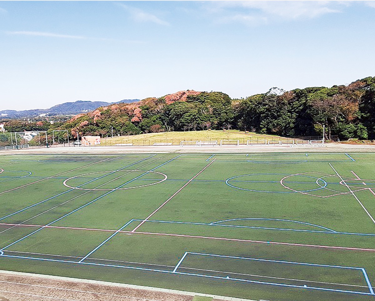 三浦市潮風スポーツ公園の多目的グラウンドに、このほど女子ラクロス専用ラインが引かれ、コートが完成した。利用者の増加を受けたもので、「現在、全国で唯一ラクロスラインが引かれている公共グラウンド」と、指定管理者のスポーツプラザ報徳・山内雄己さんは話す。