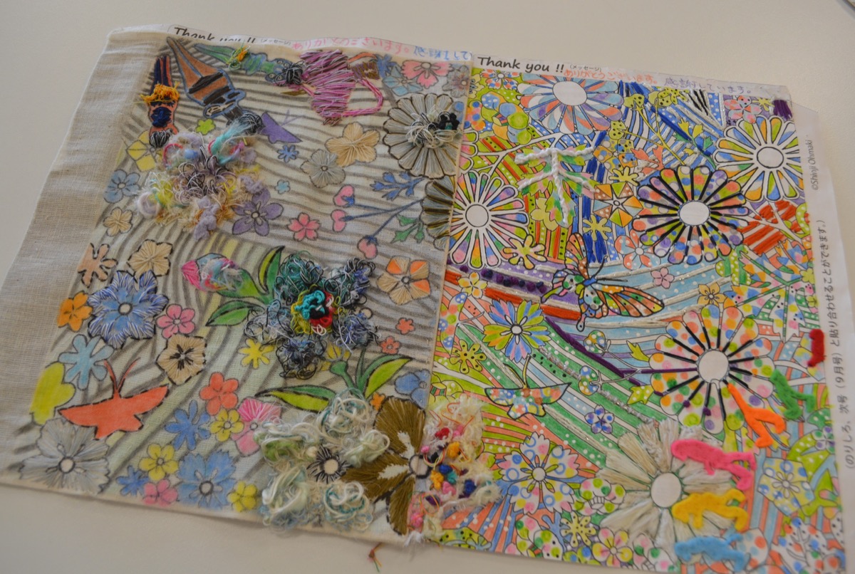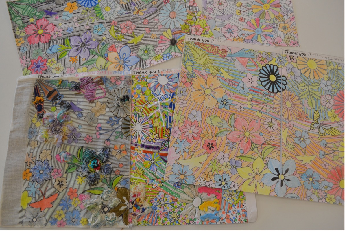これまでにも同センターを会場に作品展が行われたが、2回目の緊急事態宣言下、さらに多くの人に楽しんでもらいたいと、集まった27作品をホームページに掲出。なかには、糸と布を使った刺繍による“ぬり絵”など、独創的なアレンジ作品も展示されている。