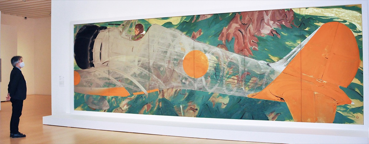 その一方で、戦争や兵器開発と強く結びつく悲しい歴史もたどった。太平洋戦争期には、戦果を宣伝するために多くの記録画が制作され、戦費の調達や国威発揚のためのポスターにも戦闘機が描かれた。戦後は空襲体験や反戦をテーマとした作品も多数発表された。