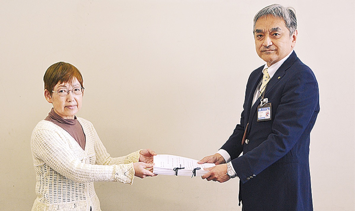 市民有志グループ「岬陽小学校の存続を求める会」(伊藤令子代表)は今月9日、三浦市長と教育長に対し、同校の統廃合計画を白紙にするよう求める陳情書と、近隣住民などから集めた1212筆の署名を提出した=写真。